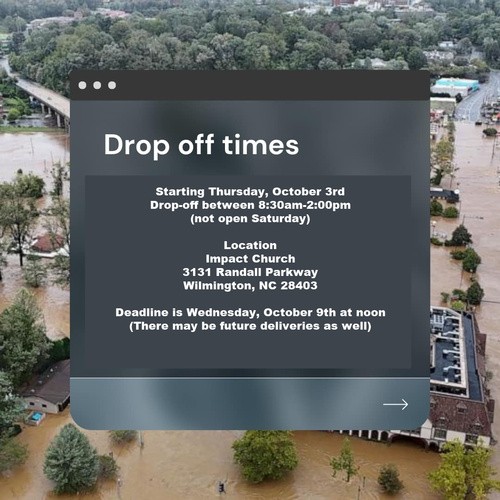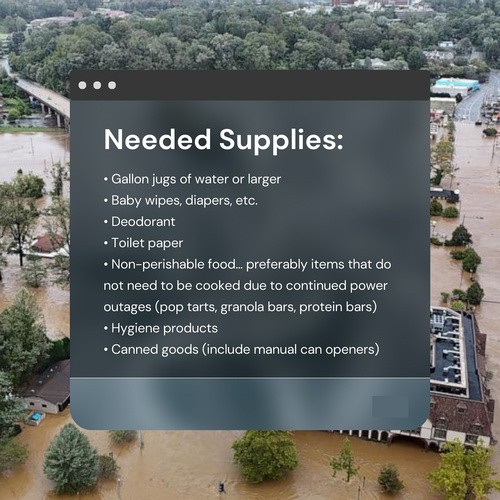 2)We are being a hub for disaster relief supplies. We will collect items and get them to Western NC (see details below).